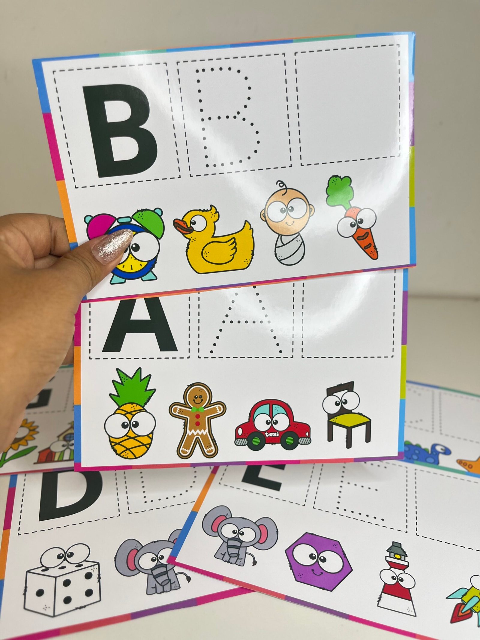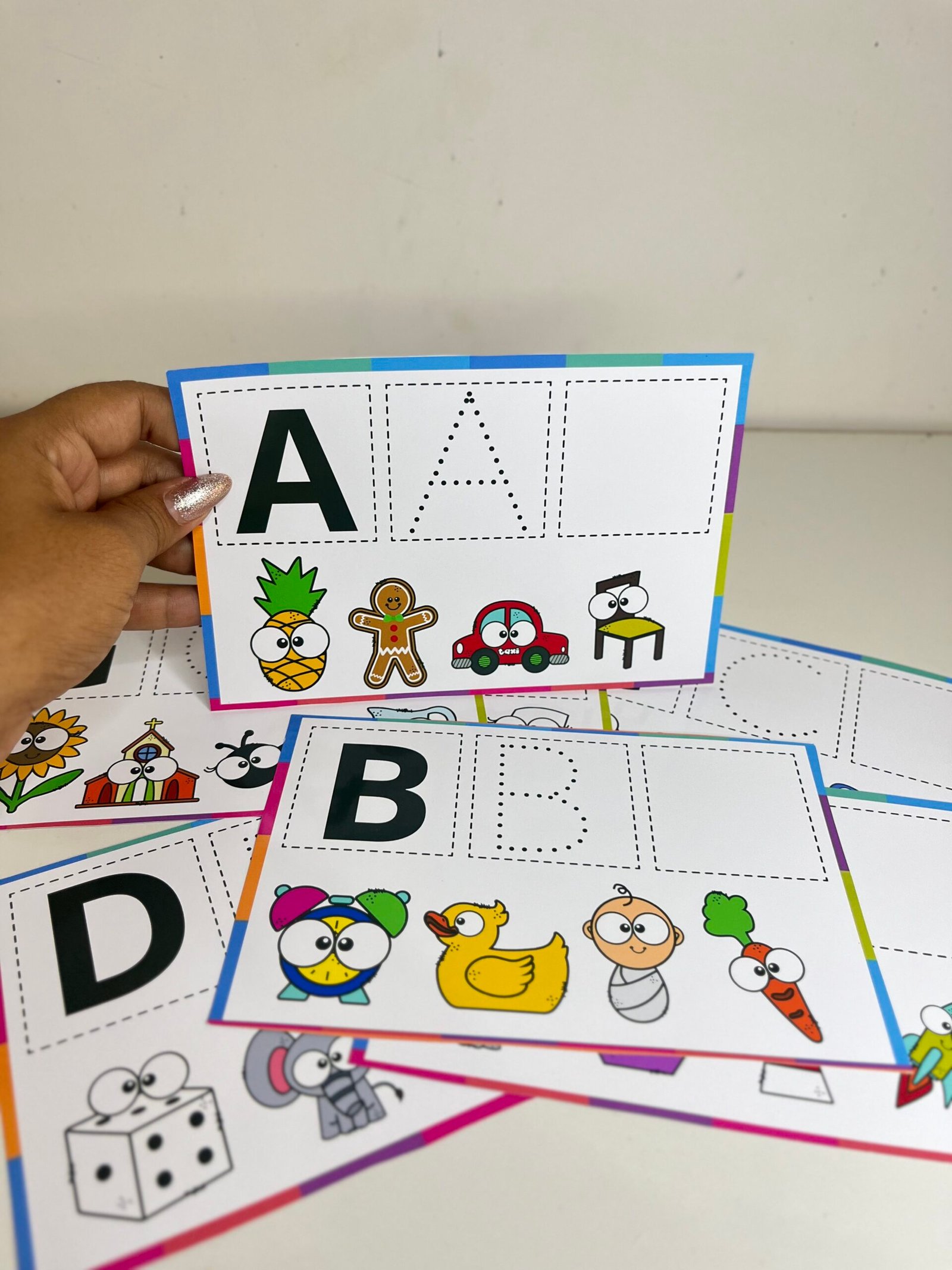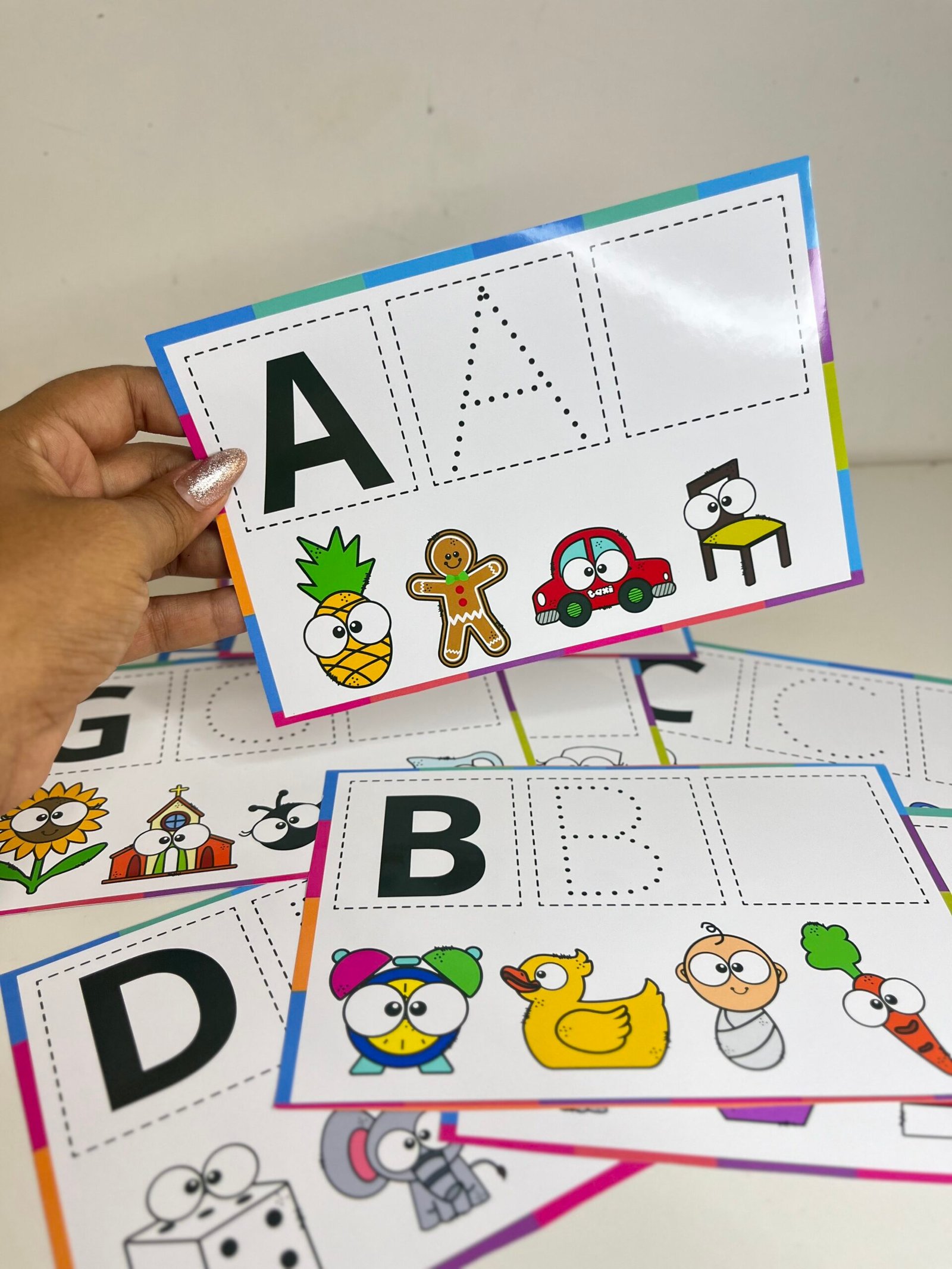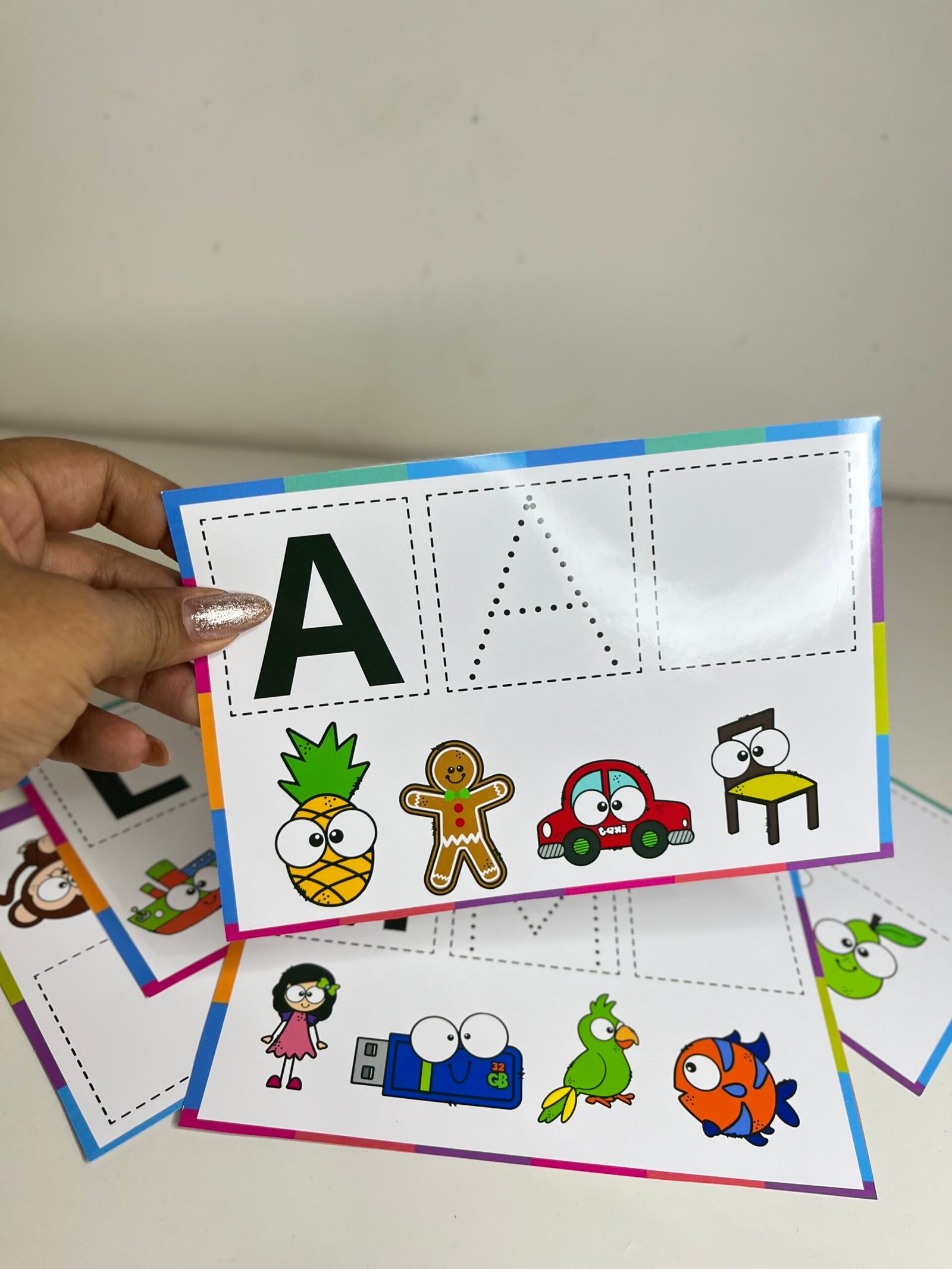 Alfabeto Tracejado: Aprendizado e Prática O Alfabeto Tracejado é uma ferramenta ideal para o desenvolvimento da escrita e da consciência fonológica. Com imagens para associação e linhas tracejadas para treino, as crianças podem praticar o traçado das letras enquanto associam sons e palavras. Benefícios: Desenvolvimento da escrita com traçado das letras. Associação de letras e imagens, reforçando a aprendizagem fonológica. Estimula a consciência fonológica e o reconhecimento de sons de forma prática e divertida. Garanta já o seu Alfabeto Tracejado e torne a alfabetização mais eficaz e envolvente!