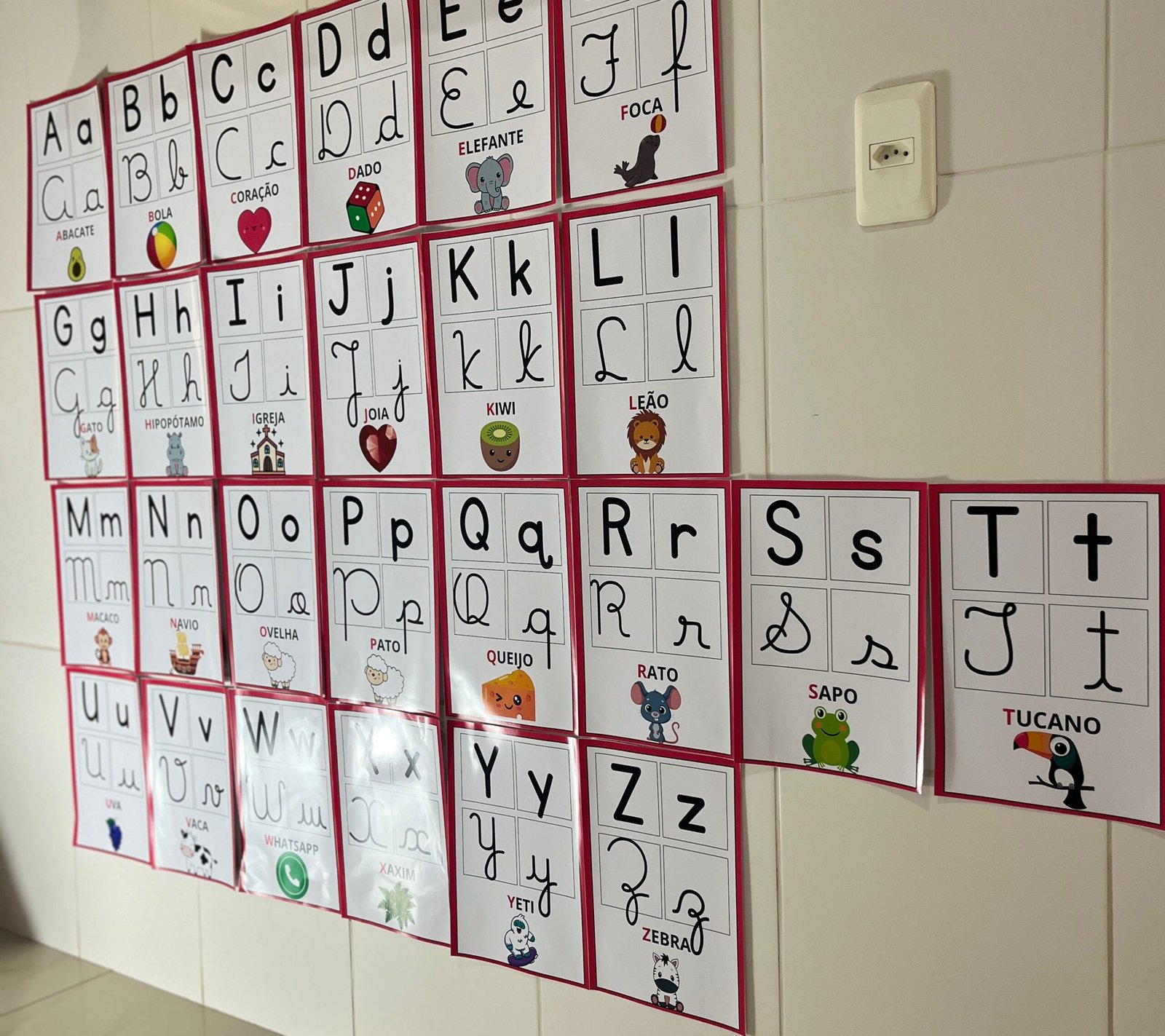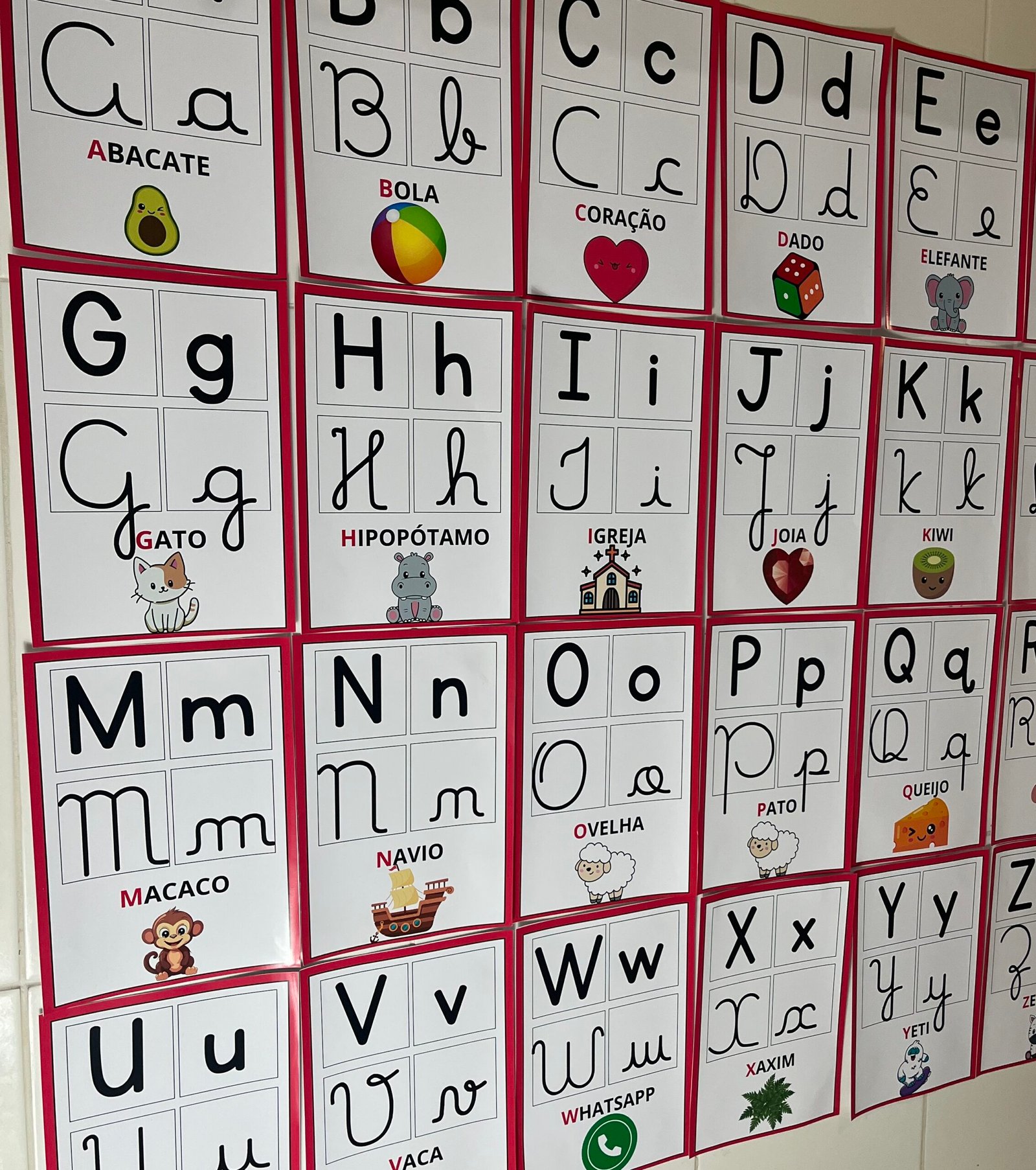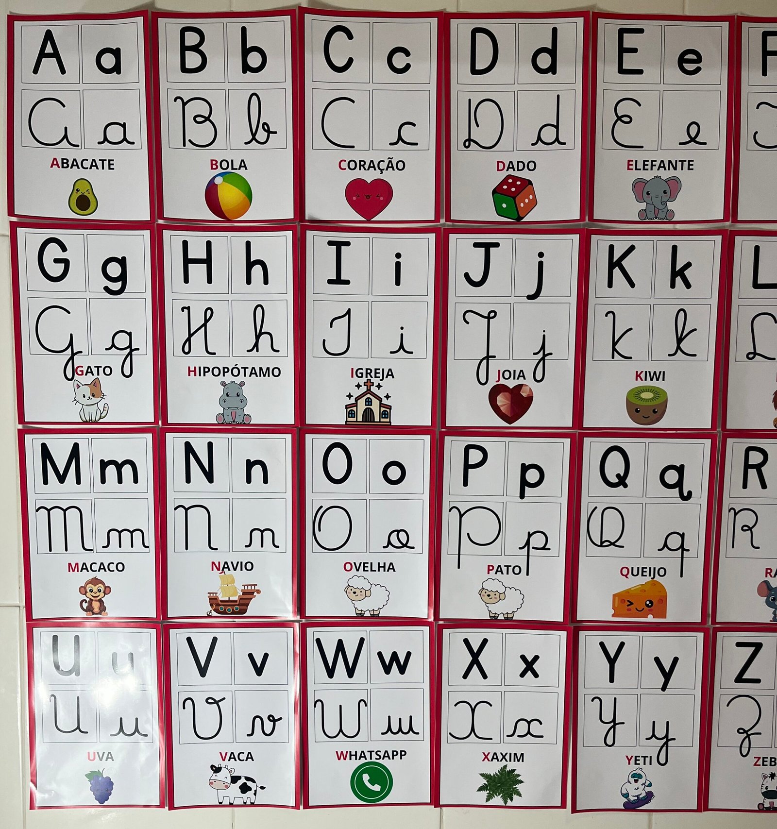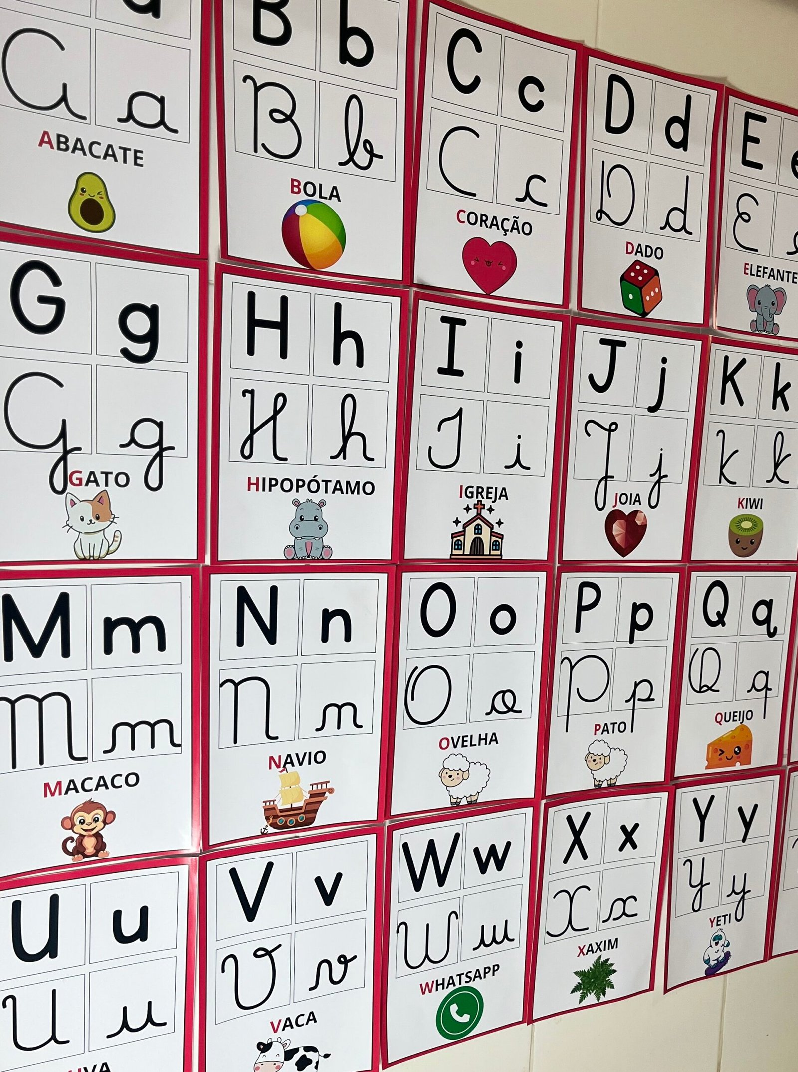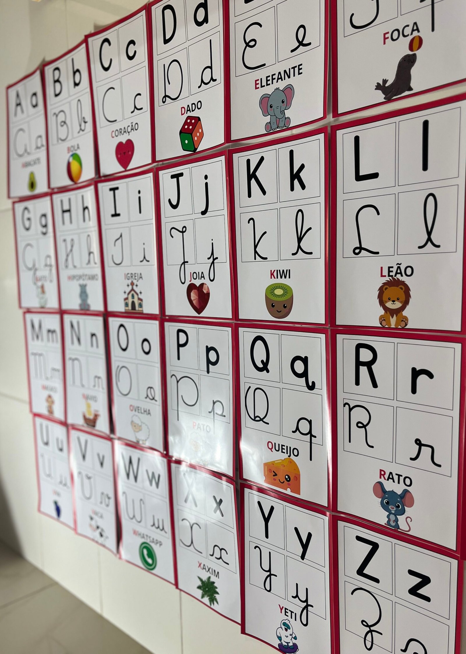 Profs, olha só esse alfabeto de parede, que lindo! ✨🔤 Cada letrinha vem nos quatro tipos de letras, acompanhada de uma palavra e uma imagem correspondente. Perfeito para auxiliar os pequenos na alfabetização de forma visual e interativa! Aproveite, ele está incrível! 💛