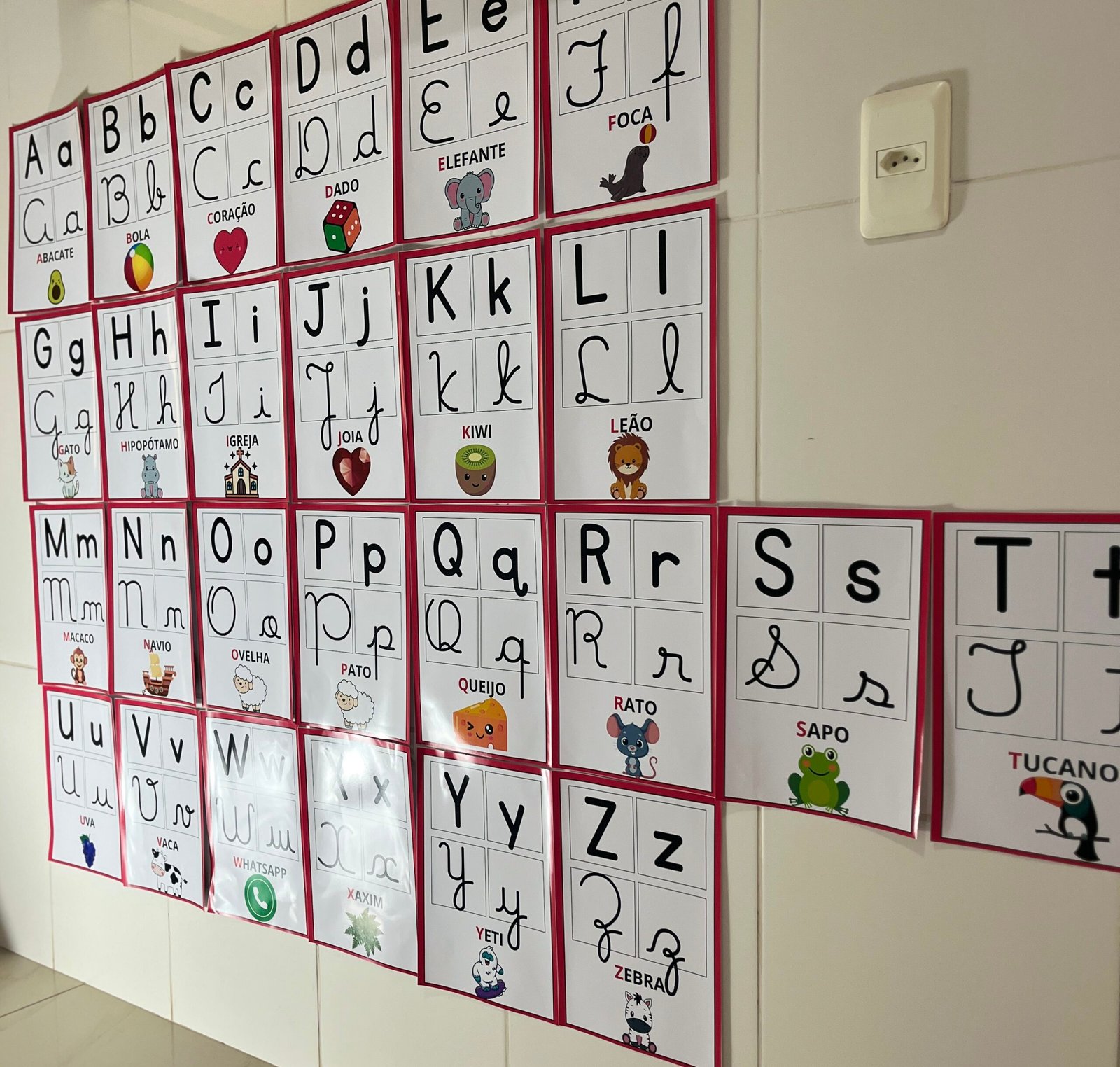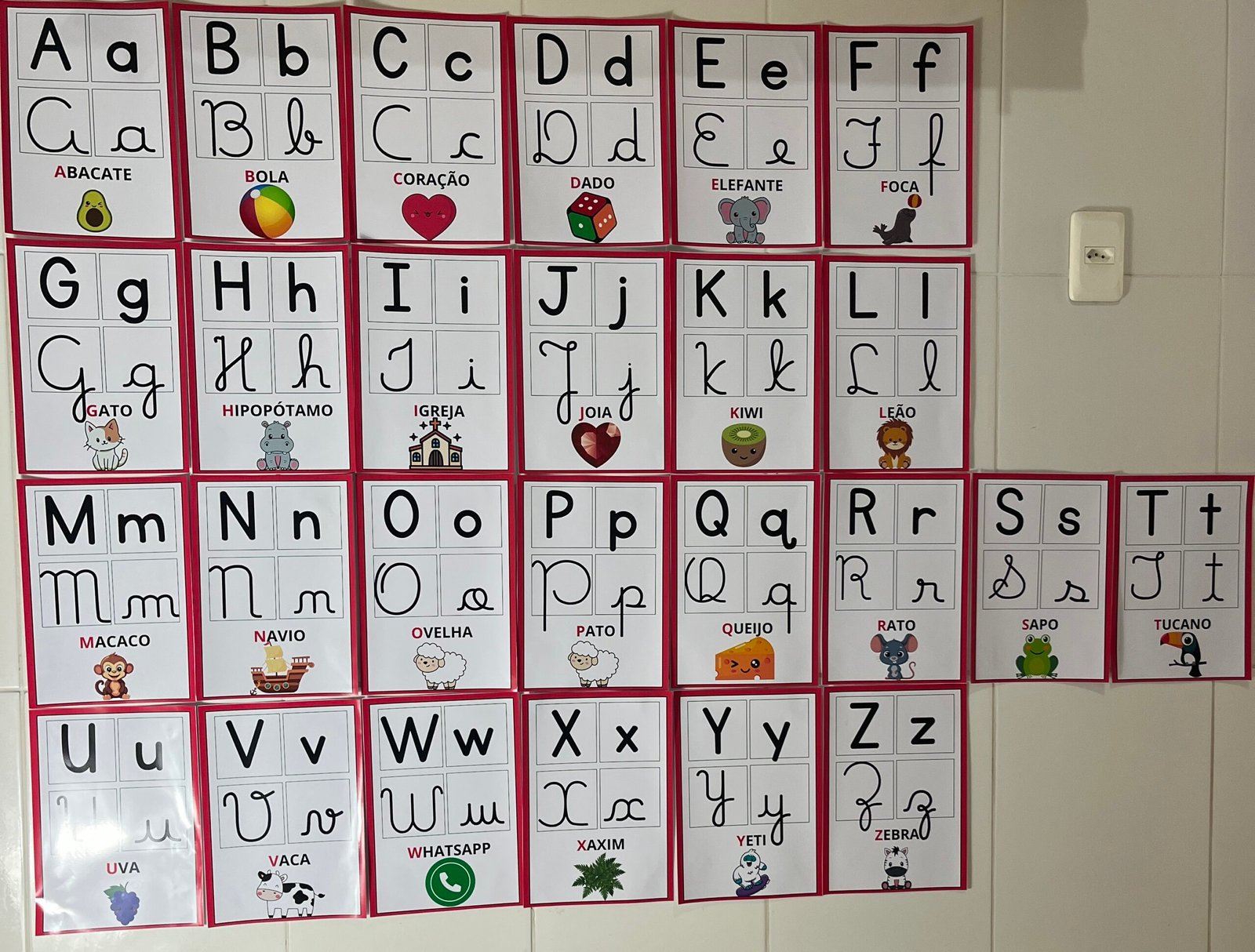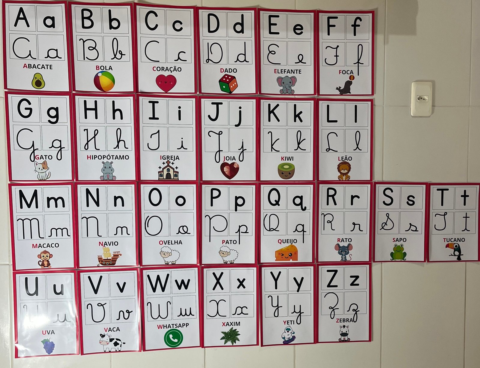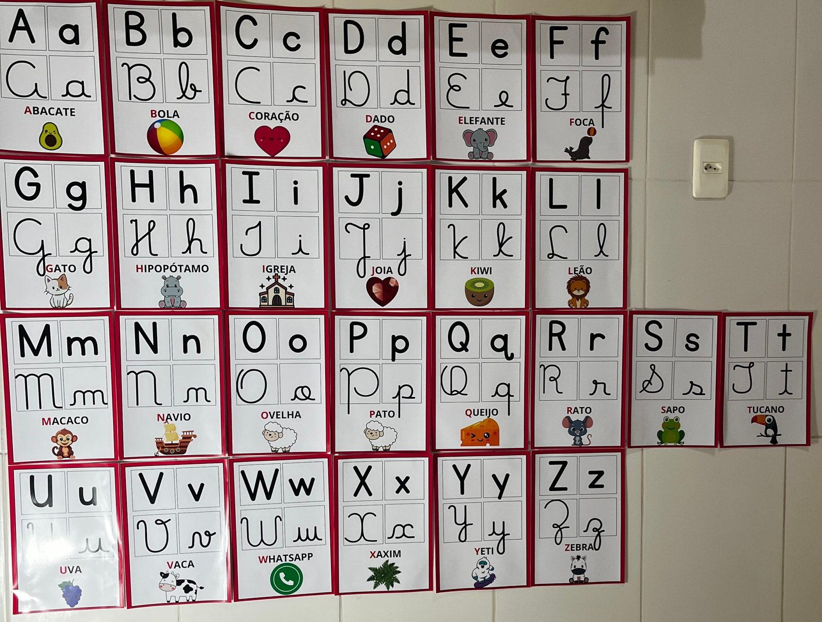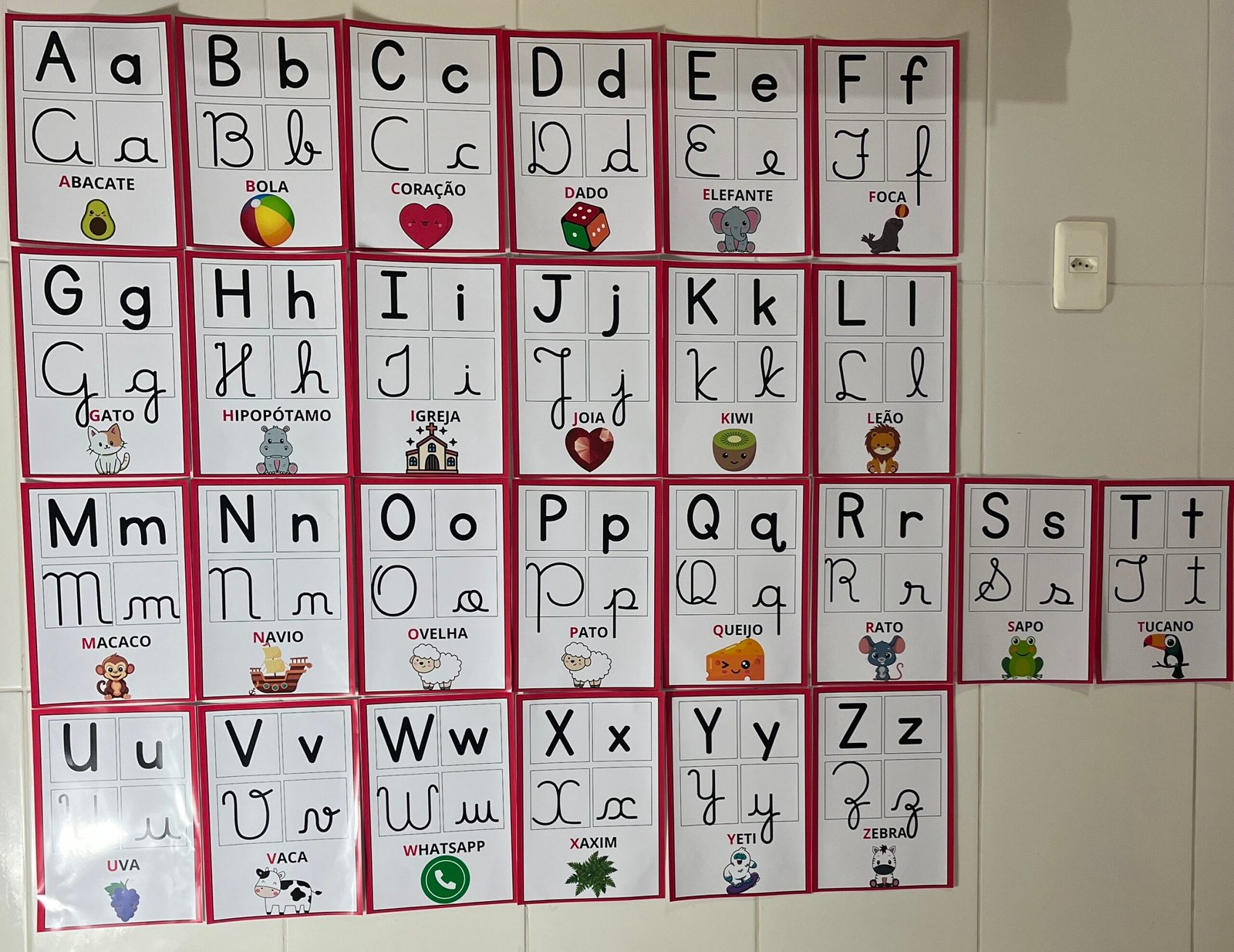 Profs, olha só esse alfabeto de parede, que lindo! ✨🔤 Cada letrinha vem nos quatro tipos de letras, acompanhada de uma palavra e uma imagem correspondente. Perfeito para auxiliar os pequenos na alfabetização de forma visual e interativa! Aproveite, ele está incrível! 💛