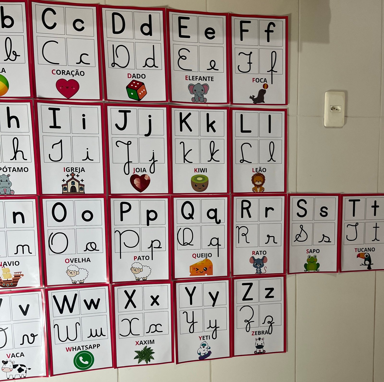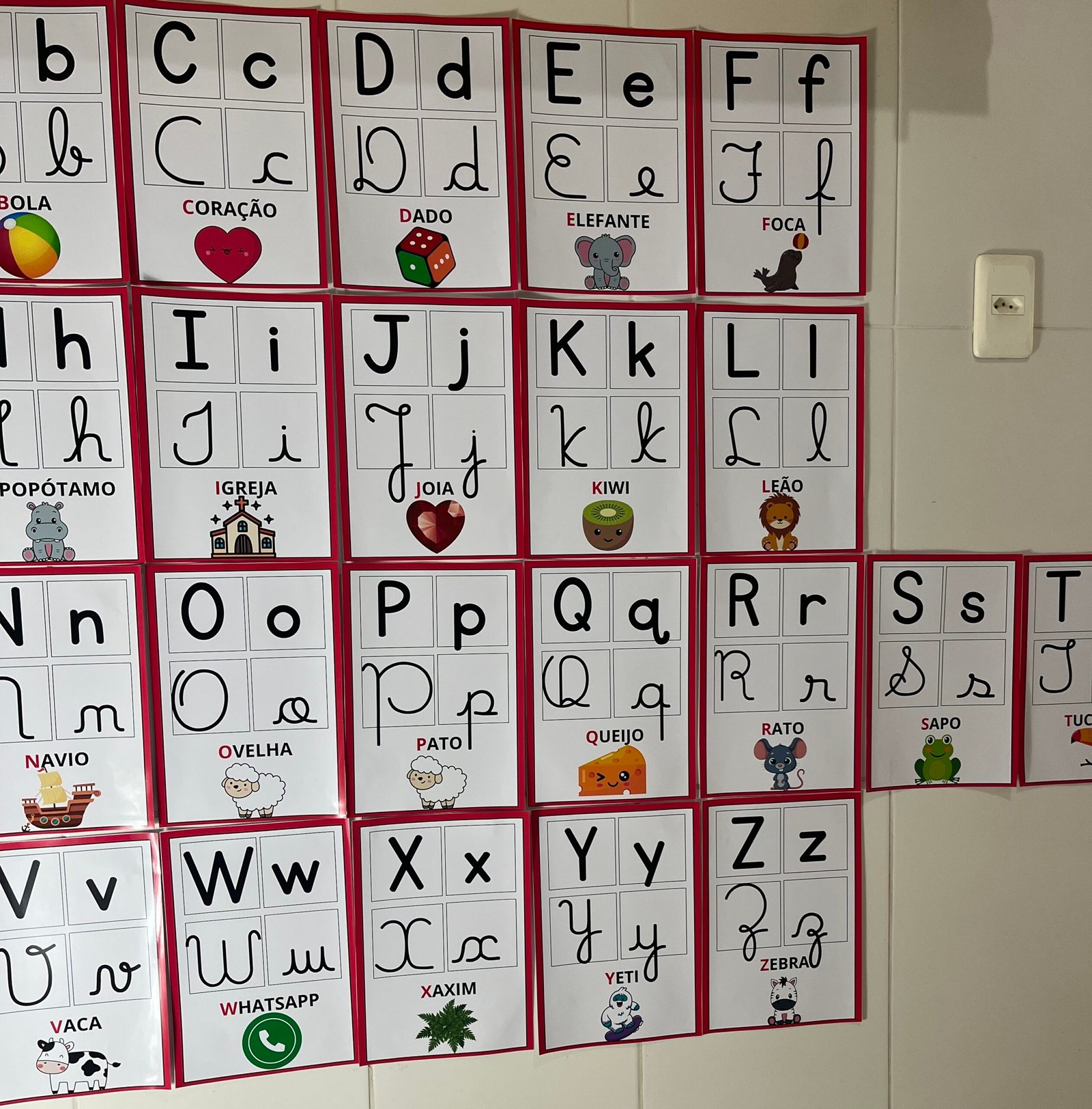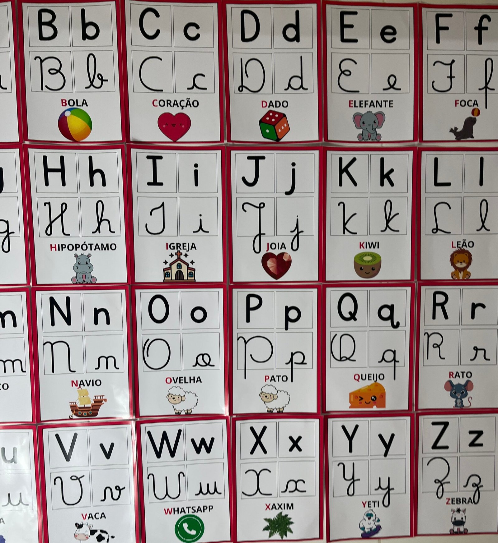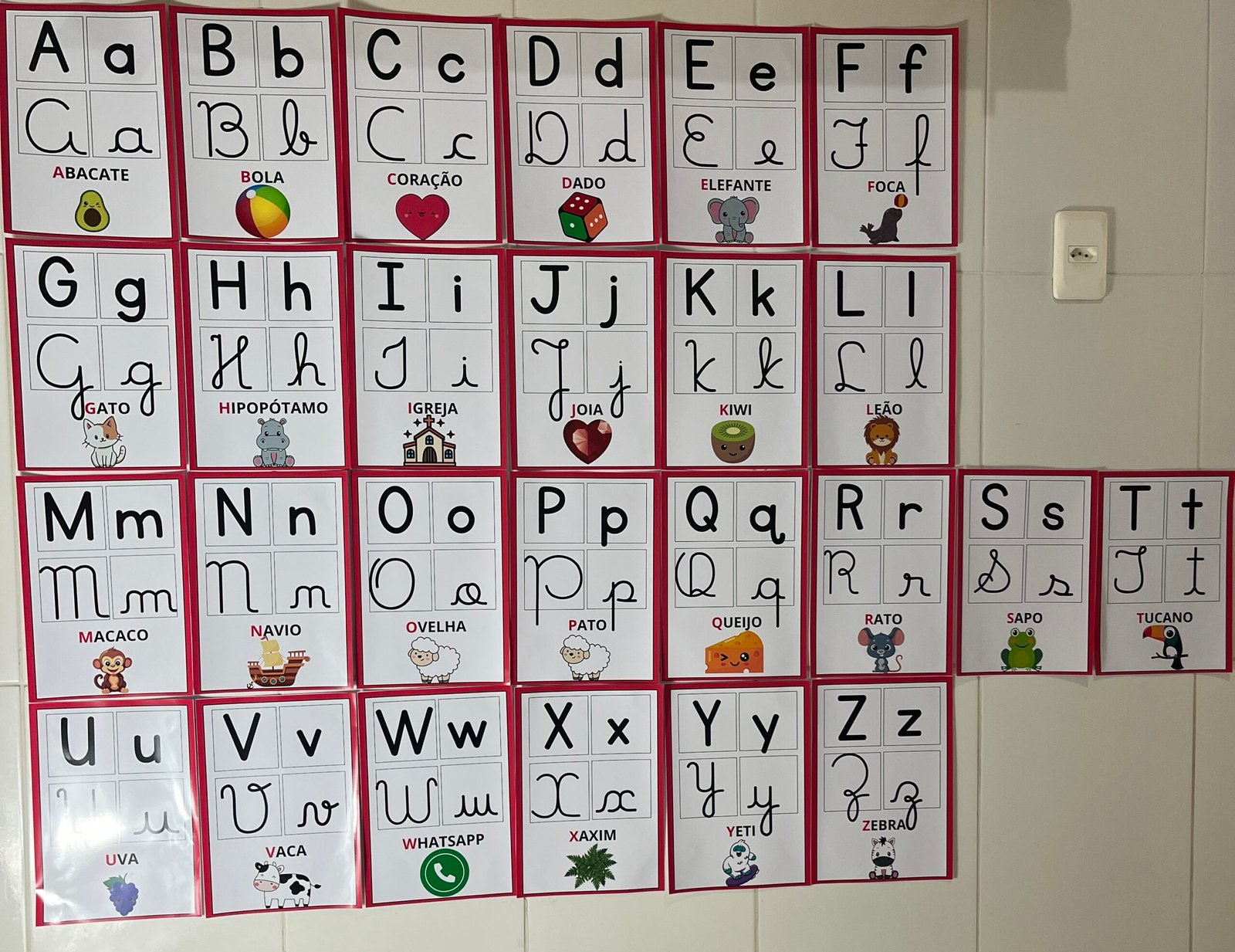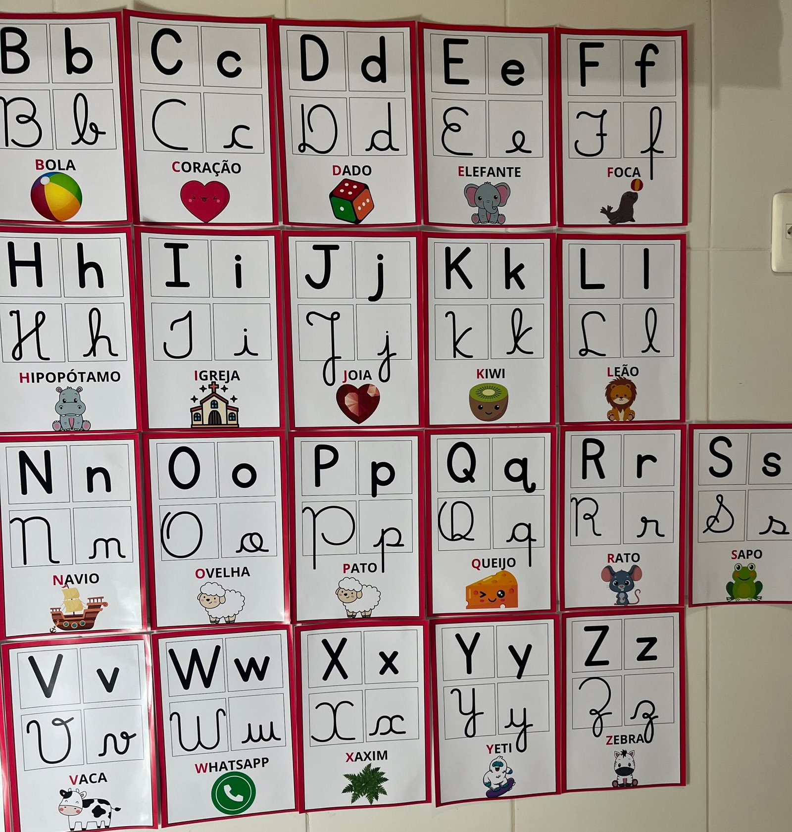 Profs, olha só esse alfabeto de parede, que lindo! ✨🔤 Cada letrinha vem nos quatro tipos de letras, acompanhada de uma palavra e uma imagem correspondente. Perfeito para auxiliar os pequenos na alfabetização de forma visual e interativa! Aproveite, ele está incrível! 💛